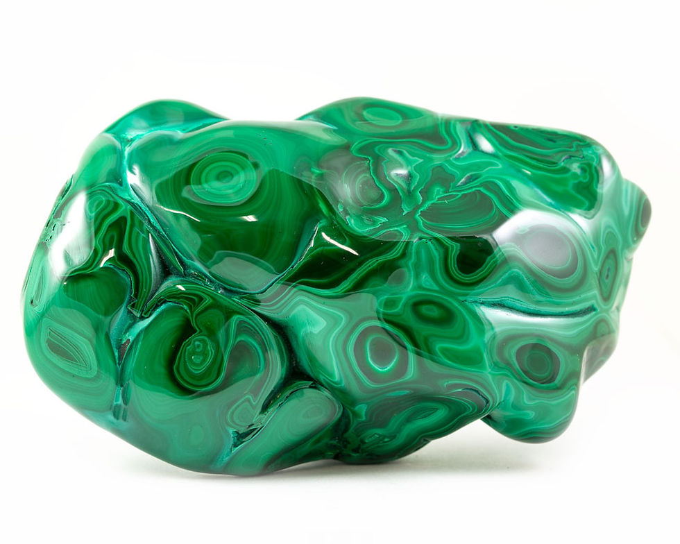 La malachite est un carbonate de cuivre hydraté qui lui confère cette couleur verte, elle se forme dans la zone d'oxydation des sulfures de cuivre. Aujourd'hui la majorité des malachites provient d'Afrique et plus particulièrement de la république démocratique du Congo. En 1835, un gisement important fut decouvert en Oural, un filon de 250 tonnes permit de produire de très belles pièces et de décorer les intérieurs de plusieurs palais en Russie; le plus gros bloc de malachite pesait 40 tonnes.